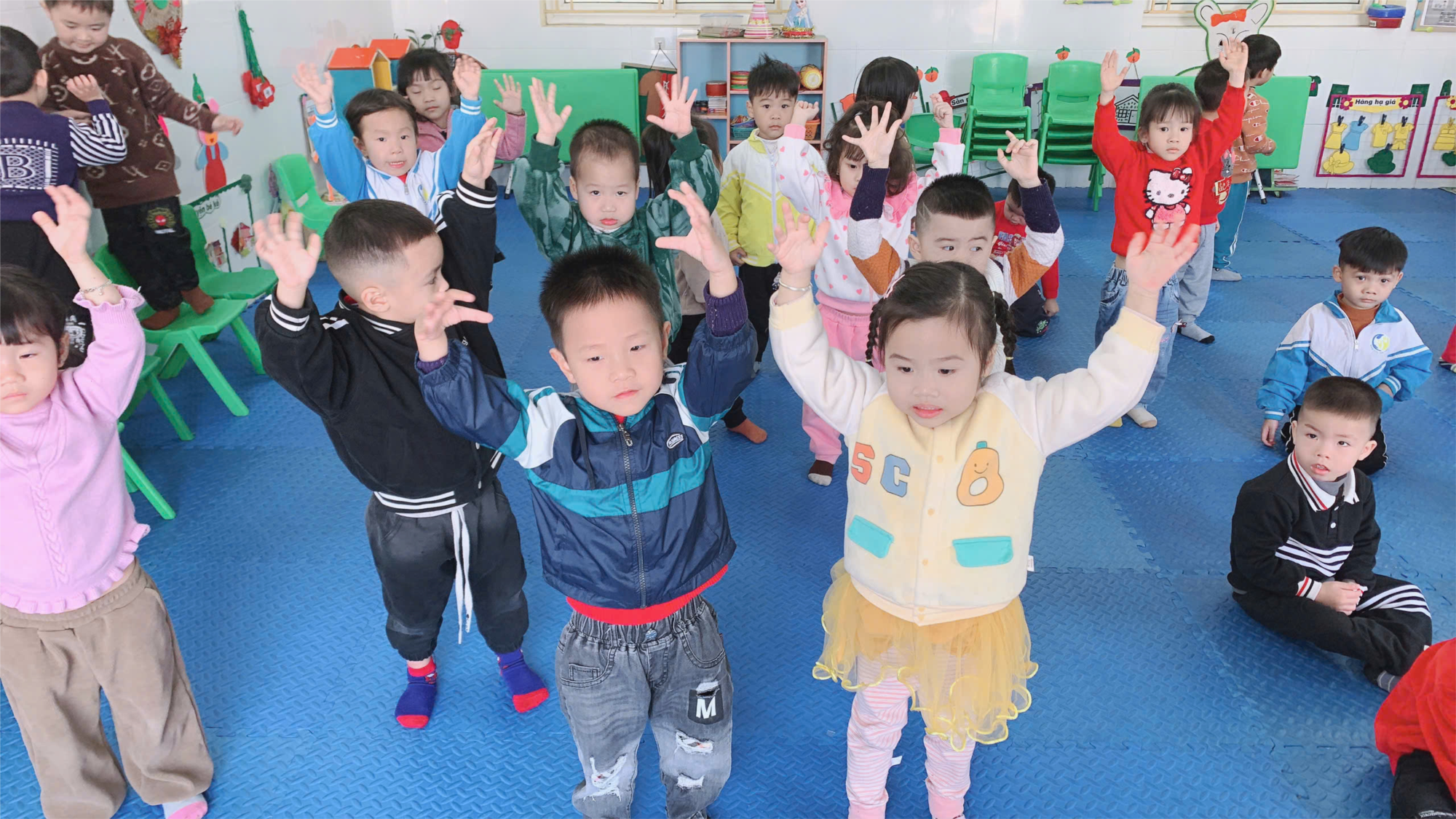 Phát triển ngôn ngữ và giao tiếp: Thông qua việc học các bài hát, các bé sẽ làm quen với nhiều từ vựng mới, cải thiện khả năng phát âm và nhận diện âm thanh. Họ cũng học cách biểu đạt cảm xúc qua giọng hát và động tác, đồng thời cải thiện khả năng giao tiếp và làm việc nhóm khi cùng nhau luyện tập.