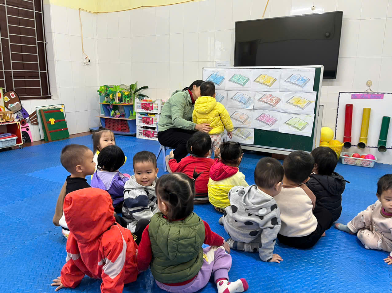 Hoạt động " Di màu quyển sách" là 1 hoạt động thú vị dành cho các bé lớp Nhà trẻ . Nó giúp trẻ biết tên gọi của quyển sách, biết cầm bút và di màu quyển sách . Đồng thời qua hoạt động này giúp trẻ có kĩ năng cầm bút bằng tay phải và thật khéo léo sao cho không chờm