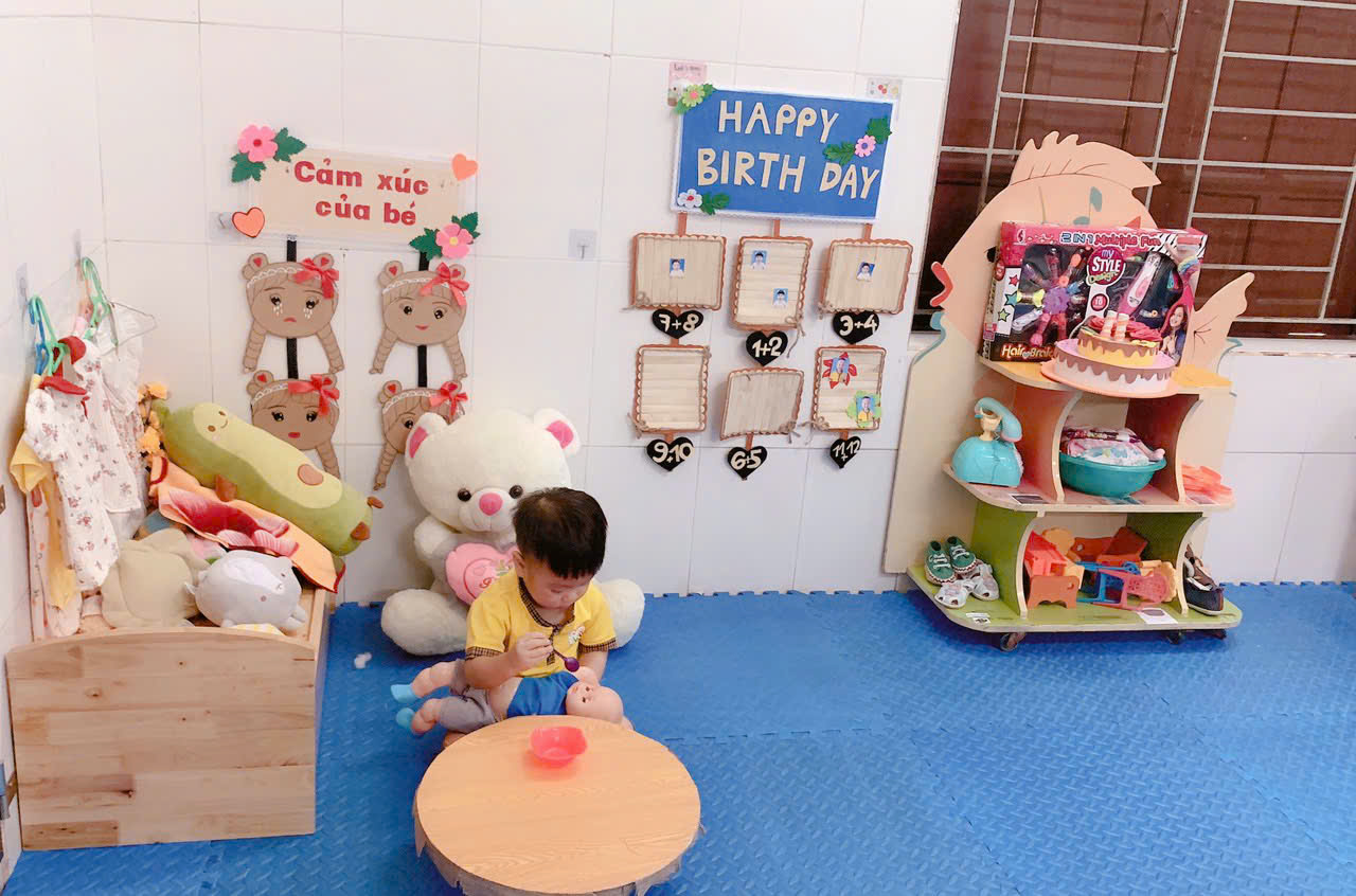 Trong trò chơi, bé học cách cẩn thận giữ “em”, biết vuốt ve, ru “em” ngủ, thậm chí “cho em ăn” bằng chai sữa giả hay đẩy xe nôi quanh lớp. Mỗi hành động nhỏ ấy không chỉ giúp bé phát triển kỹ năng vận động tinh và sự khéo léo của đôi tay, mà còn nuôi dưỡng tình cảm yêu thương, sự quan tâm và lòng trắc ẩn – những cảm xúc đầu đời quý giá của trẻ nhỏ.