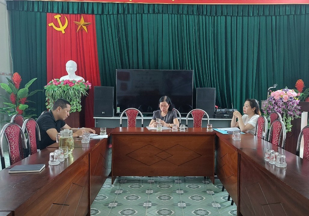 Hình ảnh ban giám hiệu nhà trường làm việc với phóng viên, nhà báo đài truyền hình Hải Phòng