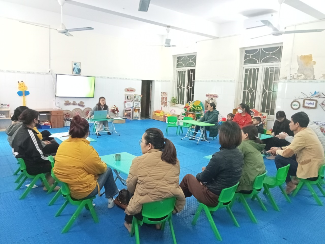 Chiều ngày 21/01/2023 trường mầm non Tân Viên tổ chức cuộc họp phụ huynh cuối học kì I năm học 2023-2024 nhằm đánh giá kết quả thực hiện nhiệm vụ học kì 1 cũng như kết quả chăm sóc - nuôi dưỡng - giáo dục của cô và trò nhà trường, đồng thời đưa ra nhiệm vụ trong thời gian tiếp theo của năm học. Tại cuộc họp, phụ huynh các lớp được nghe giáo viên chủ nhiệm trao đổi tình hình cụ thể từng trẻ, kế hoạch tổ chức Hội chợ xuân 2024 của nhà trường dự kiến diễn ra vào đầu tháng 2/2024, gian hàng của lớp được phân công phụ trách. Chi Hội trưởng phụ huynh các lớp huy động sự chung tay góp sức của các bậc phụ huynh để tạo nên sự thành công của Hội chợ xuân, giúp cho trẻ có được không gian trải nghiệm với một số hoạt động trong ngày tết cổ truyền dân tộc. Cuộc họp đã diễn ra thành công tốt đẹp, các lớp đều được 100% các bậc phụ huynh nhất rí với kế hoạch, nội dung đưa ra với mục tiêu tất cả vì trẻ thơ thân yêu. Sau đây là một số hình ảnh.