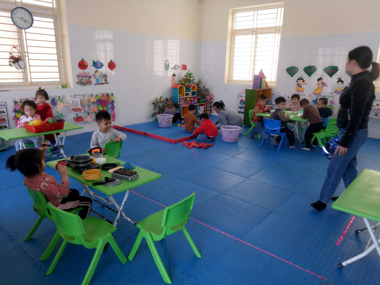 Xen kẽ giữa động và tĩnh các cô giáo đã tổ chức linh hoạt các hoạt động để đảm bảo phù hợp với sự nhận thức và phát triển của bé.