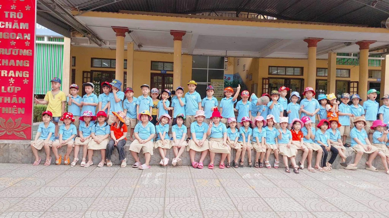 Đúng 7 giờ 20 phút các bé khối Lá tay trong tay với đồng phục gọn gàng tập trung trước sân trường để cùng với GVCN chuẩn bị cuộc hành trình đến Trường Tiểu học Tân Viên.