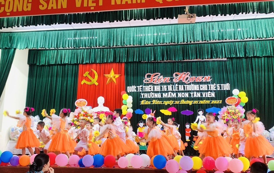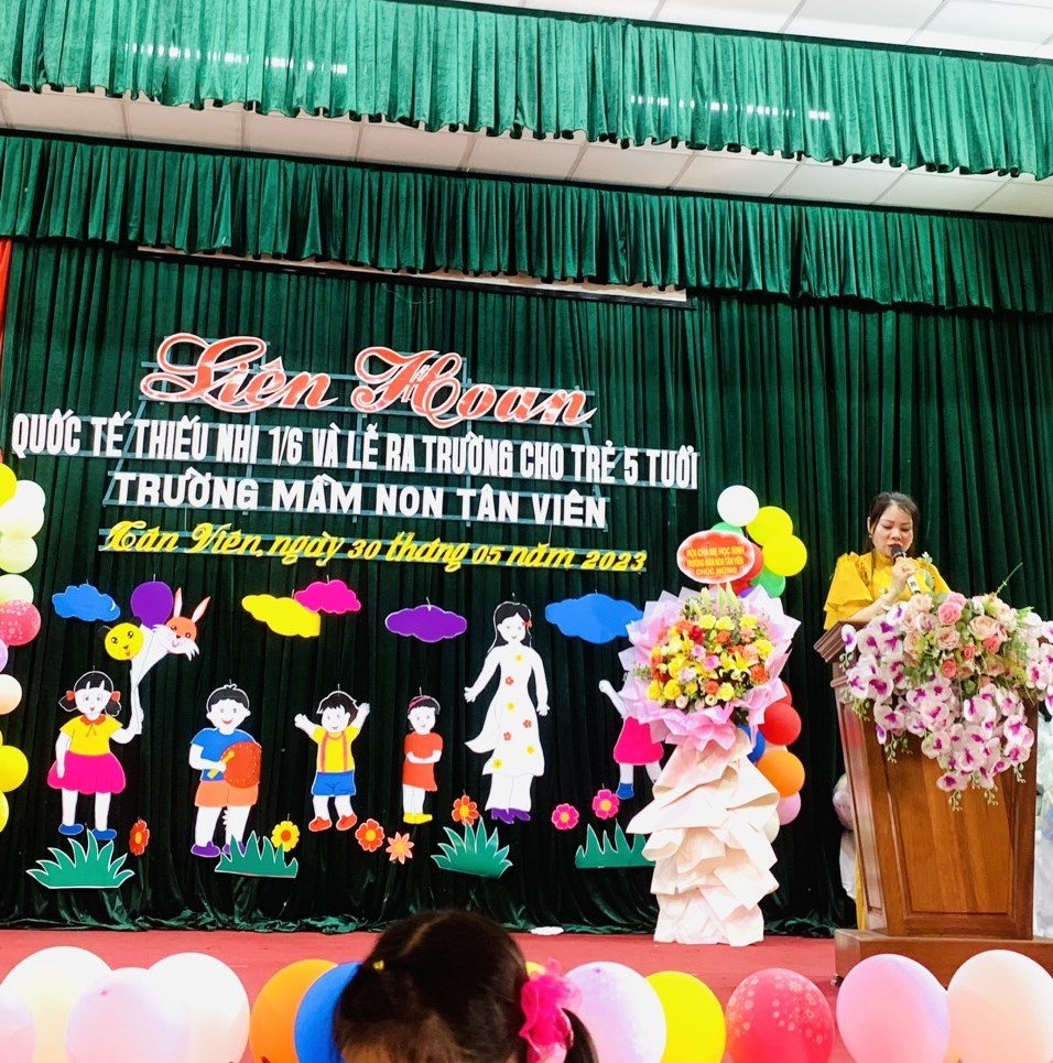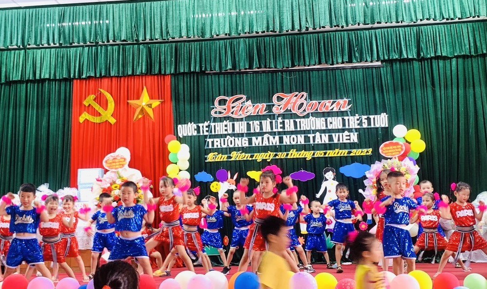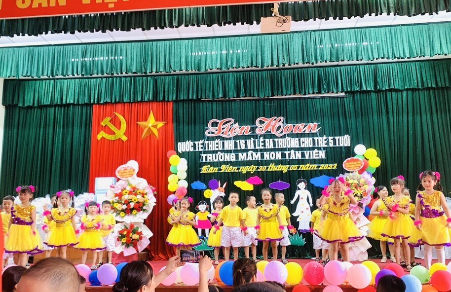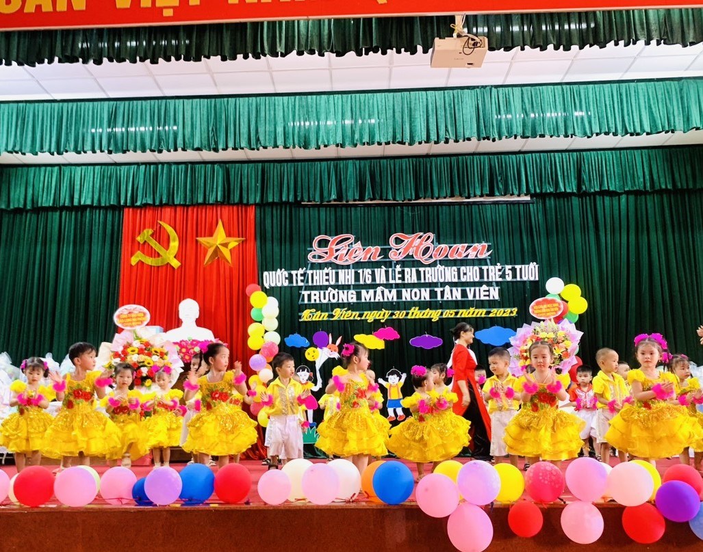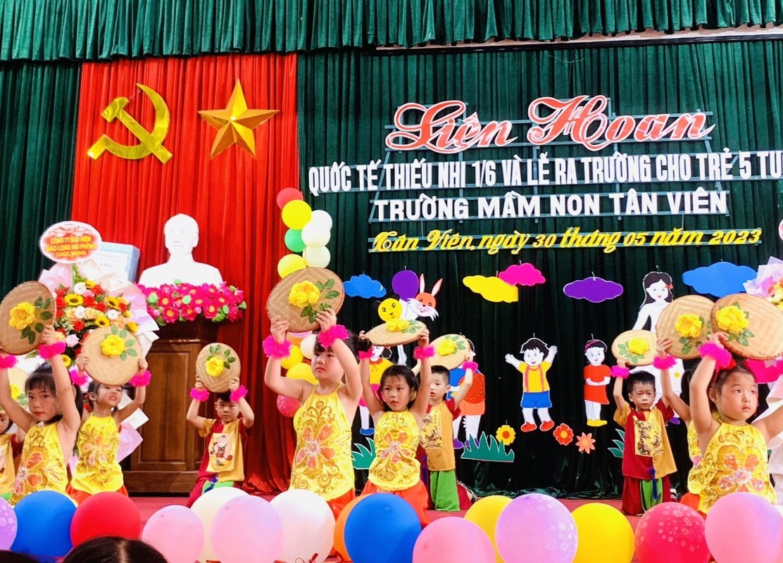 - Chương trình “Liên hoan Quốc tế thiếu nhi 1/6 và lễ ra trường cho trẻ 5 tuổi” hôm nay là những tiết mục văn nghệ vô cùng đặc sắc do cô và bé trường Mầm non Tân Viên thể hiện.