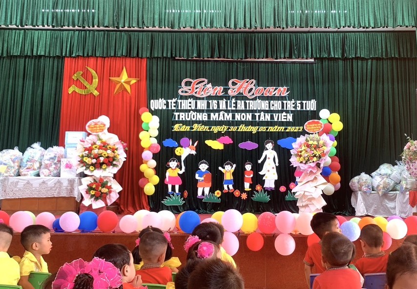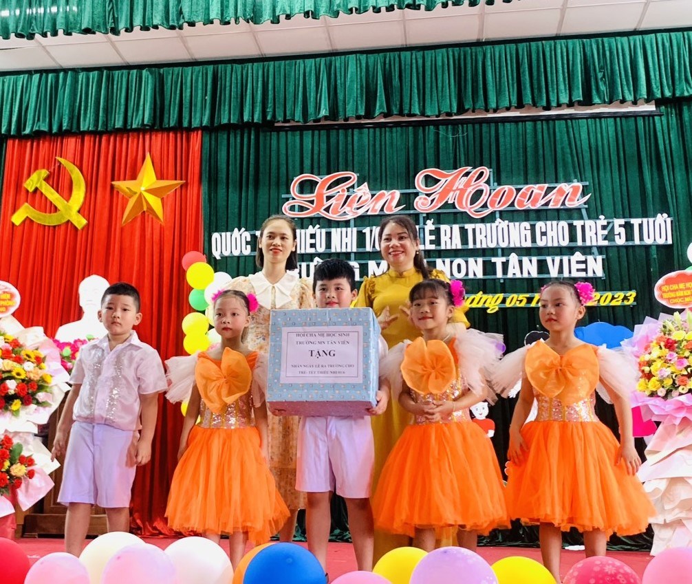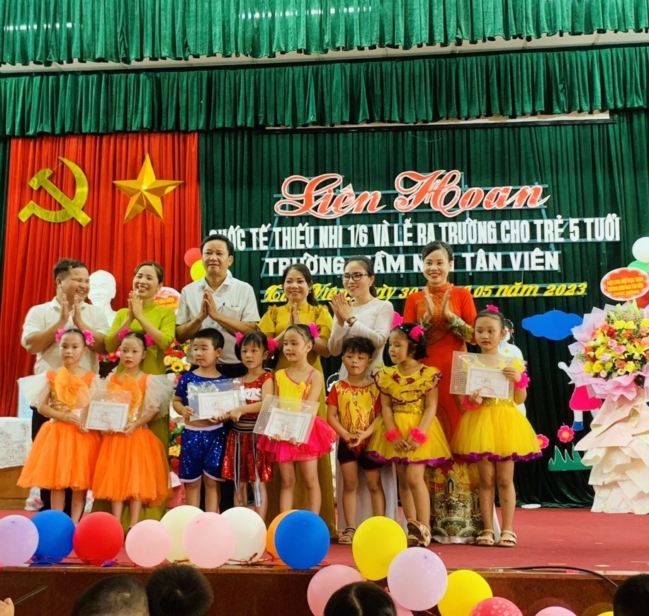 Về dự với “Liên hoan Quốc tế thiếu nhi 1/6 và lễ ra trường cho trẻ 5 tuổi” xin trân trọng cảm ơn sự quan tâm của các lãnh đạo không những dành thật nhiều tình cảm, sự yêu thương, quan tâm cho các bé, có rất nhiều món quà đầy ý nghĩa để dành tặng cho các bé trường Mầm non Tân Viên.