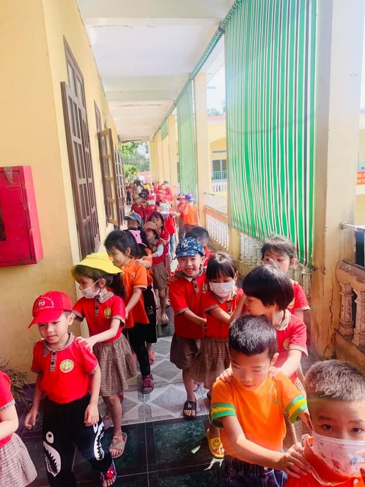 Các bé háo hức nắm tay đi sự hướng dẫn của GVCN